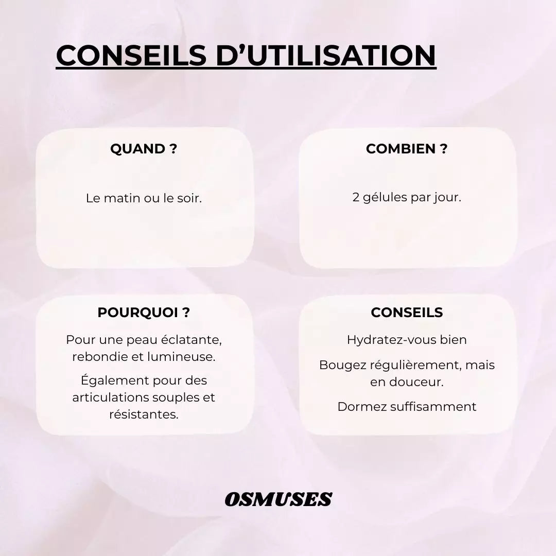 Formulé avec l'expertise de nutritionnistes, de naturopathes et de pharmaciens, notre complément respecte la réglementation européenne pour soutenir la beauté de la peau, des cheveux et des articulations, de manière naturelle et efficace.